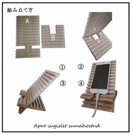 杉スリット1枚使用して、組み立て式に作られたスマホ立てです。