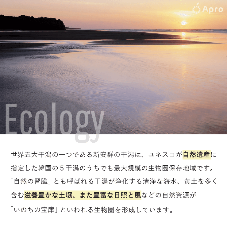 自然豊かな干潟の海水を太陽と風の力で時間をかけて結晶させた、自然のミネラルバランスをもつ塩田塩です。