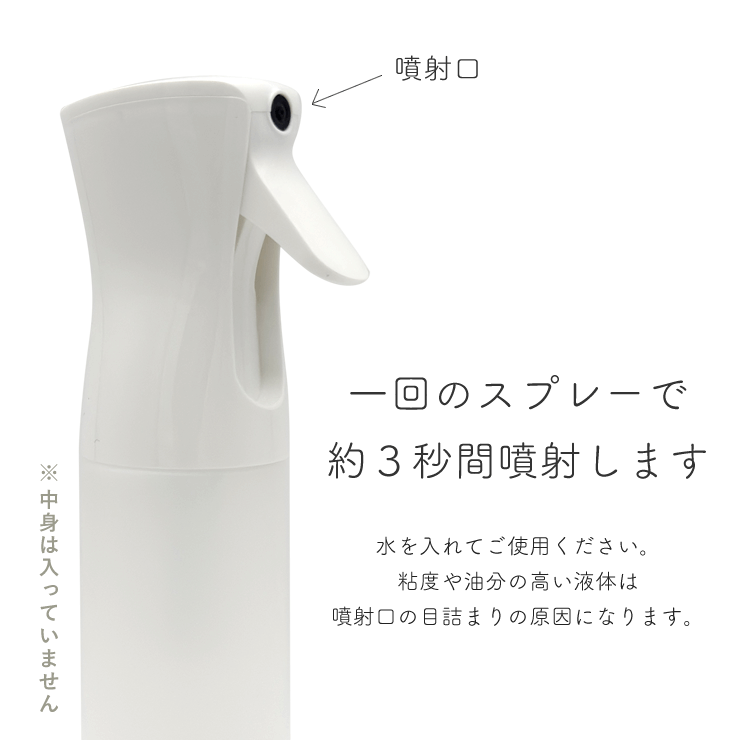 一回のスプレーで約3秒間噴射します。