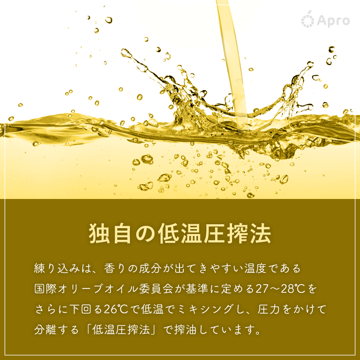 「低温圧搾法」で、オリーブ本来の香り、そのまま!