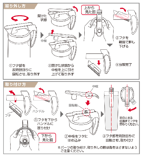 フタや中栓は、取り外し、取り付け時の誤作動を避けるために、動きを固めの設定にしております。