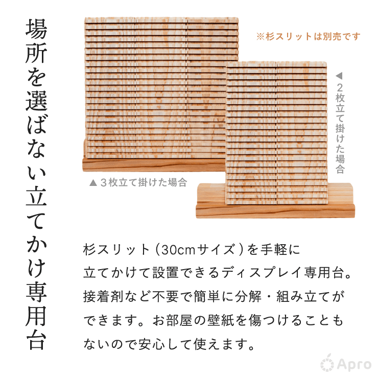杉スリット3枚を並べておくことができる杉スリットのディスプレイ専用台です。