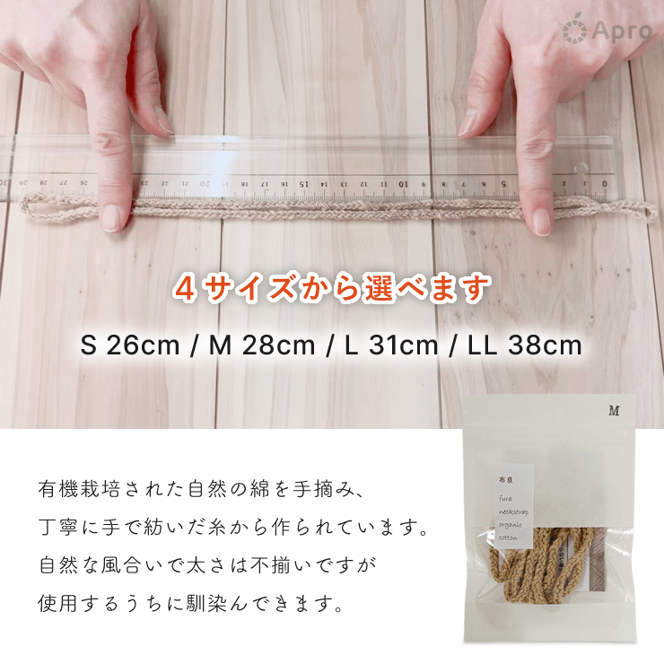 有機栽培された自然の綿を手摘み、手で紡いだ糸から作られていますので、不揃いですが、使用していると馴染んで来ます。