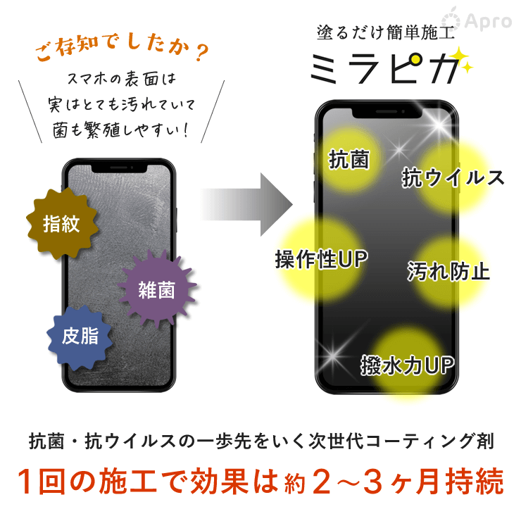 ミラピカひとつで安心・安全!除菌・抗菌・抗ウイルス効果!