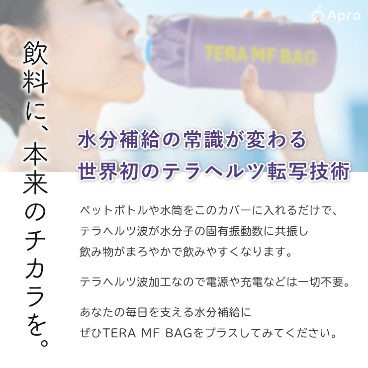 このテラヘルツ波は、水分子の固有振動数に共振することで、飲料にやさしく働きかけます。