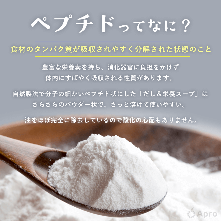※「ペプチド」とは、食材のタンパク質が吸収されやすく分解された状態のことです。