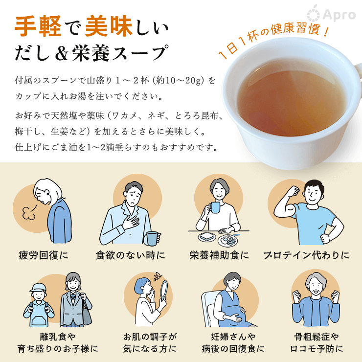 「だし&栄養スープ」は体力気力のもとになる栄養スープです。